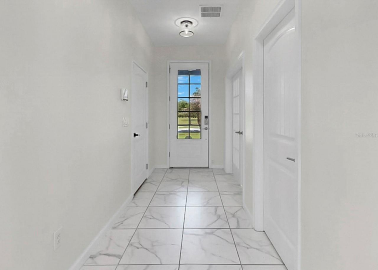 Welcome home to this STUNNING 4-bedroom, 2.5-bath home situated on a LARGE, PREMIUM LOT with peaceful WATER VIEWS! From the moment you arrive, you'll notice the EXCEPTIONAL CURB APPEAL with manicured landscaping, fresh mulch, vibrant plants, a stone accented entryway, and a welcoming front door with a glass insert to allow natural light to flood the home. Step inside to an open-concept floor plan where the first floor showcases beautiful MARBLE-LOOK TILE flooring. A spacious flex room at the front of the home enclosed with FRENCH DOORS offers the perfect space for a home office or study. The gourmet kitchen is a true centerpiece, featuring stylish black countertops, stainless steel appliances, a MASSIVE walk-in pantry, and an oversized island ideal for entertaining. The great room is filled with natural light from oversized sliding glass doors that look out to a beautiful yard and pond views. Upstairs, you'll find elegant WOOD-LOOK flooring throughout, along with a spacious loft, perfect for use as a media center or game room. The LARGE PRIMARY SUITE is a relaxing retreat with abundant natural light, a HUGE walk-in closet, and a spa-like en suite bathroom complete with dual vanities, a walk-in shower, soaking tub, and private commode. Three additional generously sized bedrooms share a full bathroom. An upstairs laundry room adds everyday convenience. Step outside to enjoy the expansive backyard and screened lanai, perfect for relaxing or entertaining. Located in the sought-after Triple Creek community, residents enjoy resort-style amenities including THREE community pools, playgrounds, fitness center with group exercise classes, basketball, pickleball, sand volleyball and tennis courts, scenic walking trails, and more-all with convenient access to shopping, dining, parks, and beautiful beaches!